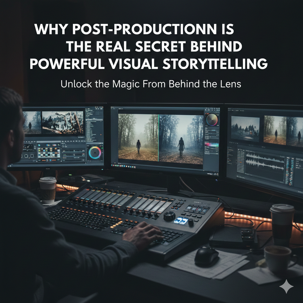 Why Post-Production Is the Real Secret Behind Powerful Visual Storytelling When we talk about stunning visuals, most people think of cameras, lenses, actors, or the perfect location. But the real magic of storytelling doesn’t happen on the set, It happens quietly, behind a screen, long after the shoot wraps.   Post-production is where ideas mature, […]